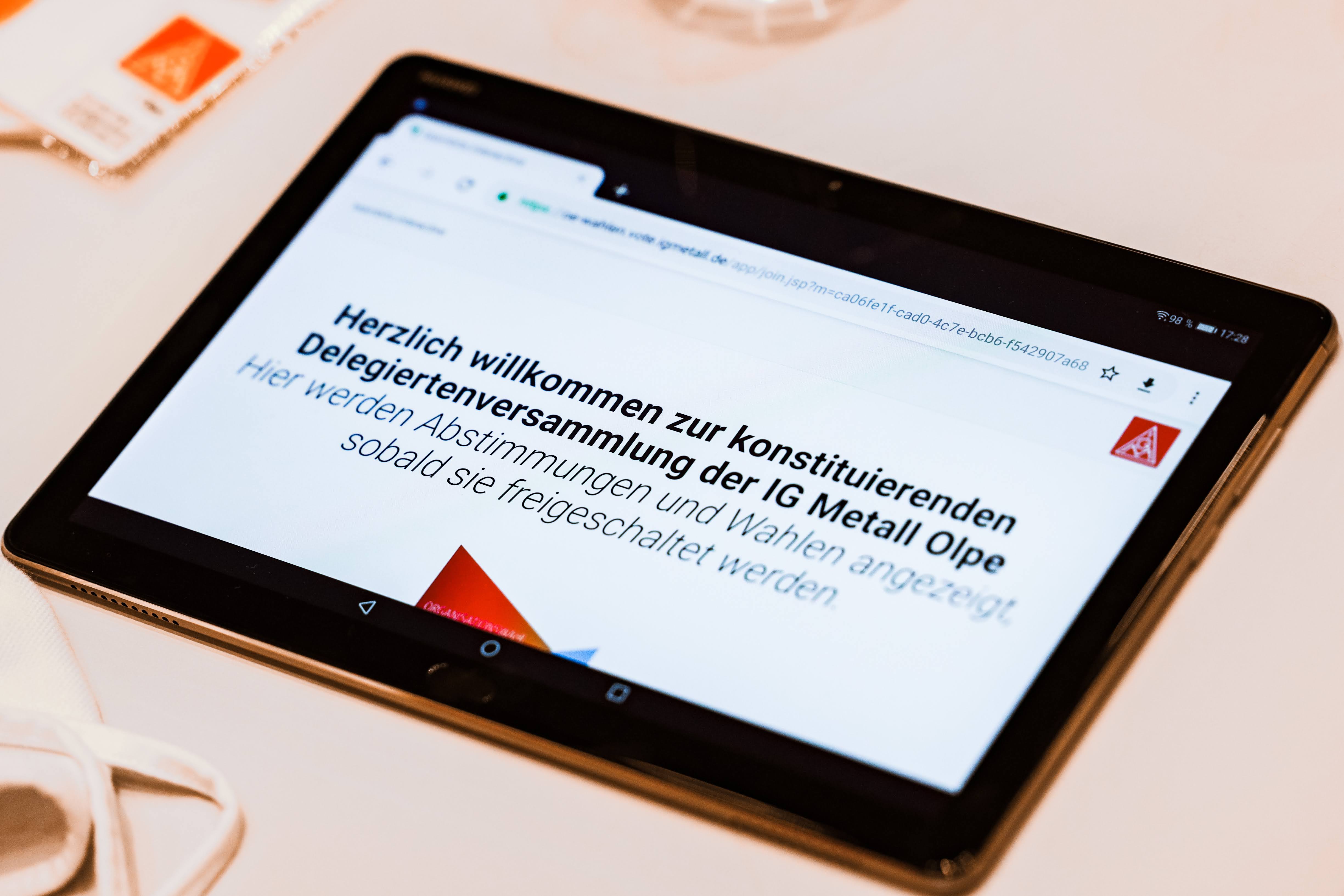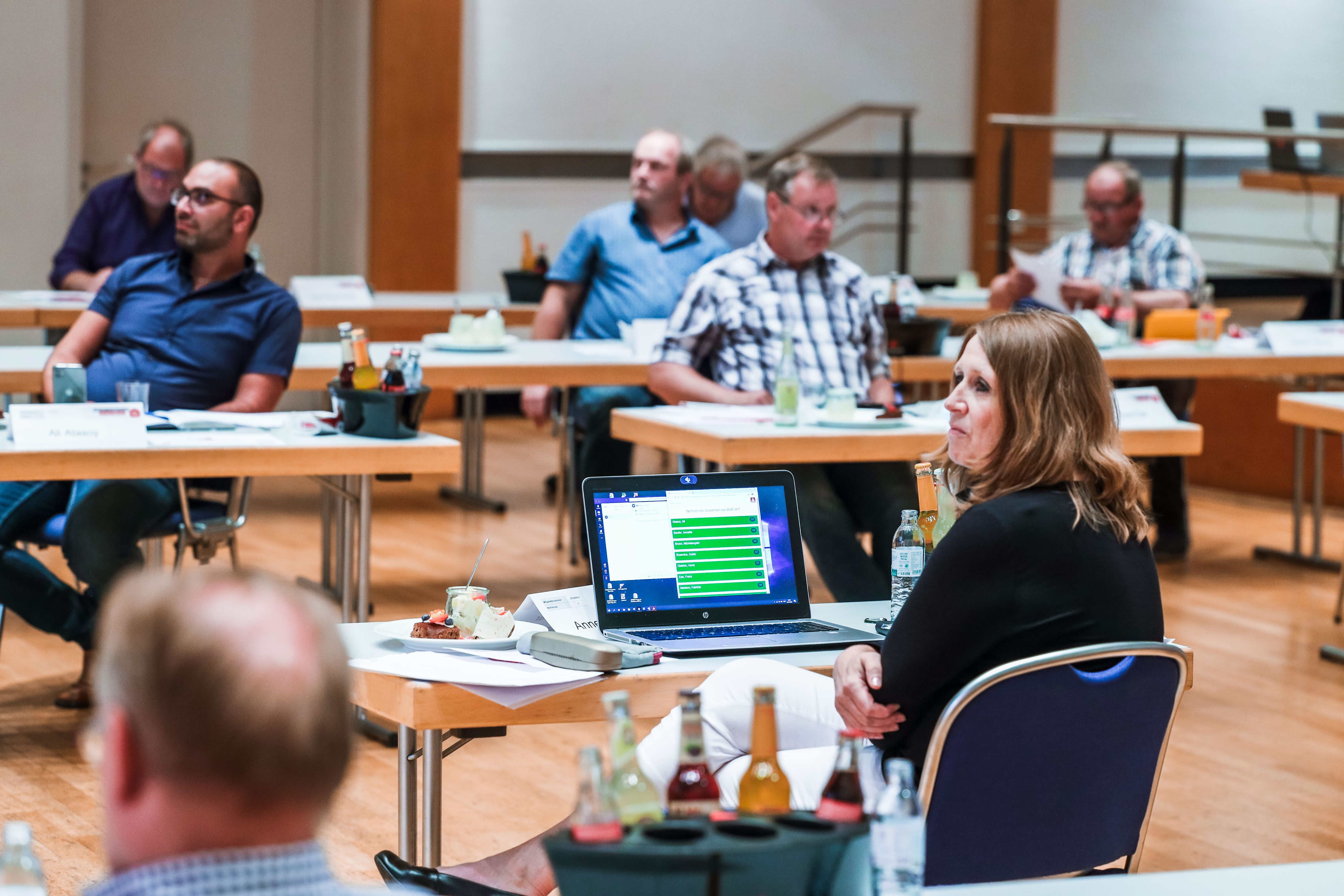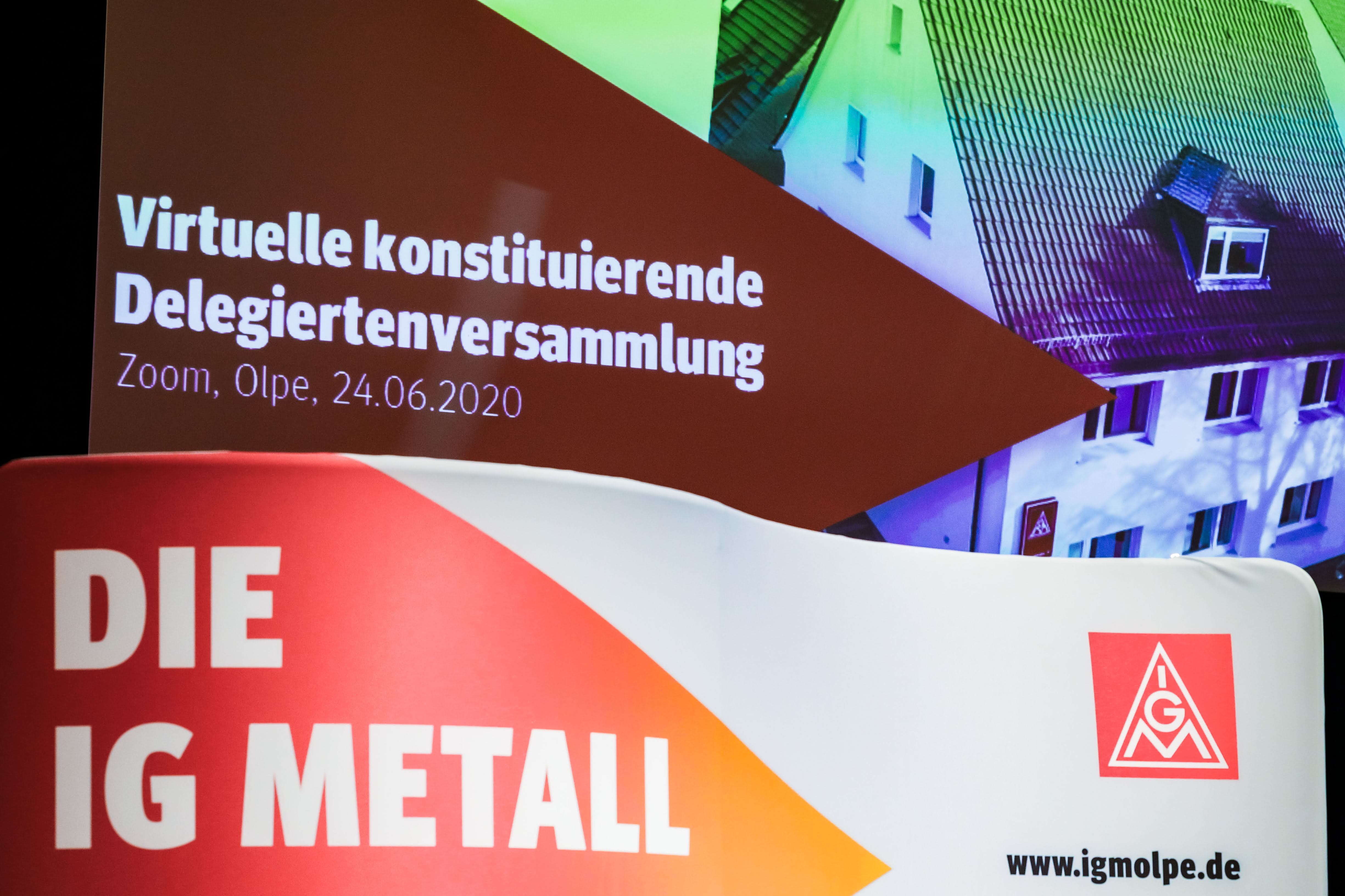 Die IG Metall im Kreis Olpe ist von Beginn der Corona-Pandemie an sofort neue Wege gegangen und hat ihre Mitglieder über virtuelle Versammlungen auf dem Laufenden gehalten. Bundesweit ist der Standort Olpe damit zum Modellprojekt geworden. Nun hat das Team die Erfahrungen der vergangenen Wochen genutzt und die erste (teil-)virtuelle konstituierende Delegiertenversammlung der gesamten IG Metall abgehalten: Während ein Teil der Teilnehmer gestern Abend in der Stadthalle in Olpe anwesend war, hatten sich die anderen per Video zugeschaltet. Über das elektronische Beteiligungssystem konnten alle an den anstehenden Wahlen teilnehmen, was während der vergangenen Wochen akribisch vorbereitet und juristisch geprüft worden war, um Datenschutz und Anonymität zu gewährleisten. Im Vorfeld erläuterte André Arenz detailliert und mit Hilfe eines vorbereiteten Videos, wie die Abstimmung über Teambiz funktioniert, was anschließend mit einer Probewahl getestet wurde. Sollte ein Delegierter nicht anwesend sein, erkennt das System automatisch, wer sein Stellvertreter und damit stimmberechtigt ist. Die Tagesordnung wurde angenommen, das elektronische Wahlverfahren einstimmig genehmigt und Uwe Schulte zum Versammlungsleiter bestimmt. Die Ergebnisse der Wahlen wurden jeweils von der Wahlkommission überprüft, das Ergebnis war einen kurzen Moment später auf der großen Leinwand sichtbar. In der ersten Wahlrunde wurde die Mandatsprüfungs- und Wahlkommission festgelegt, in der ab sofort Jörg Böhmer, Hubertus Rath, Susanne Schneider, Hans-Peter Grammel, Ingo Hamers und Alina Weber vertreten sind.