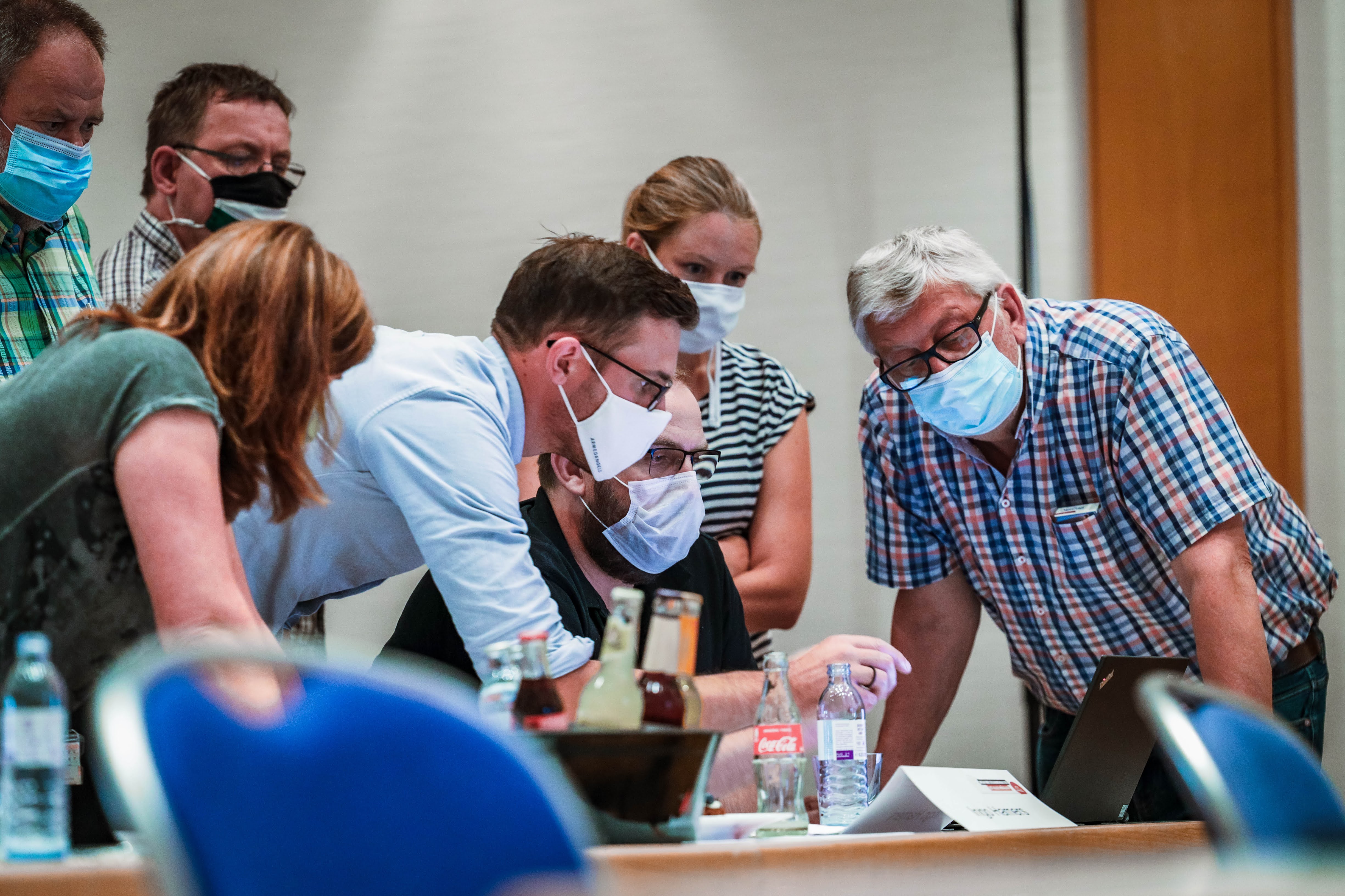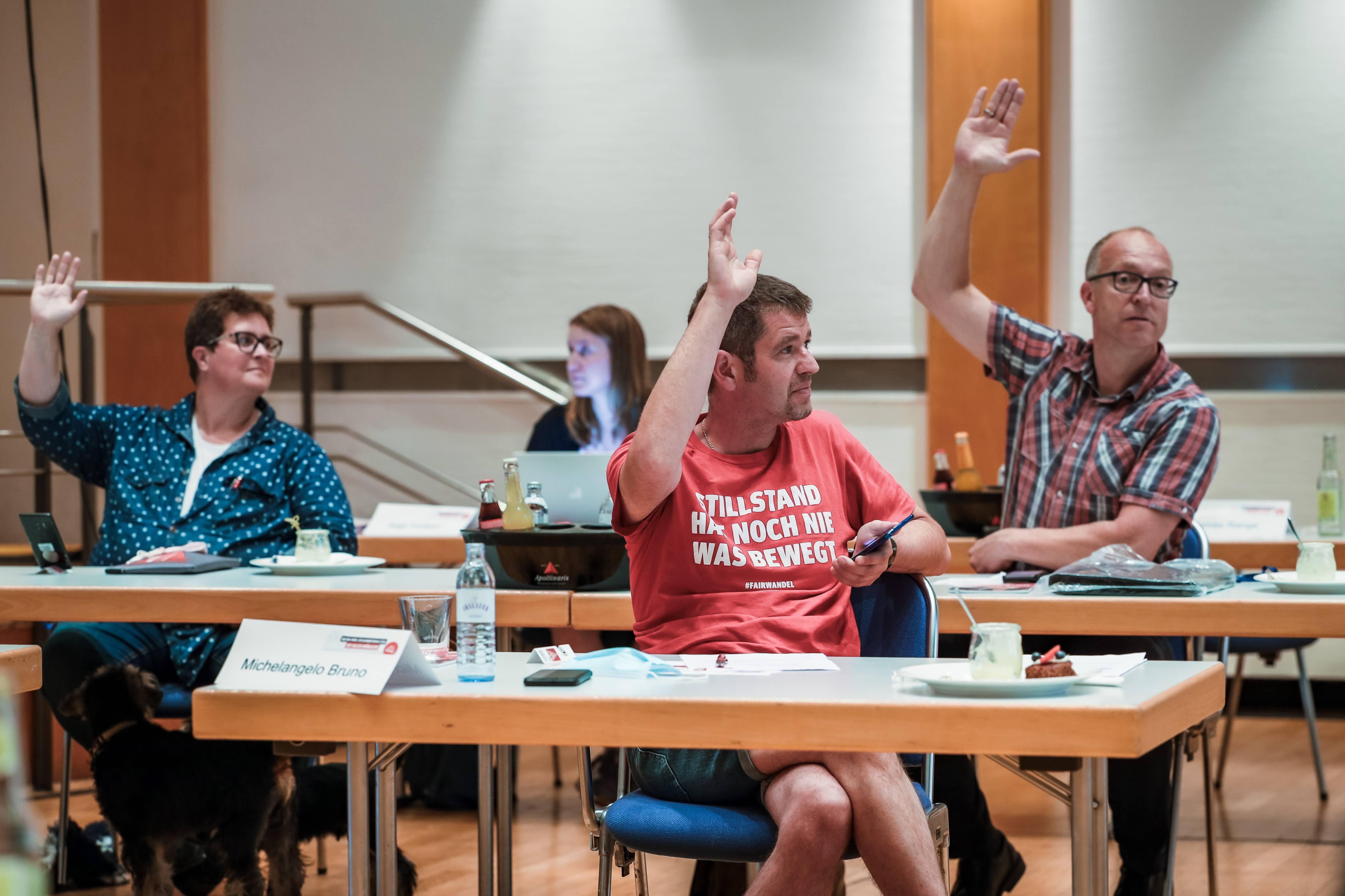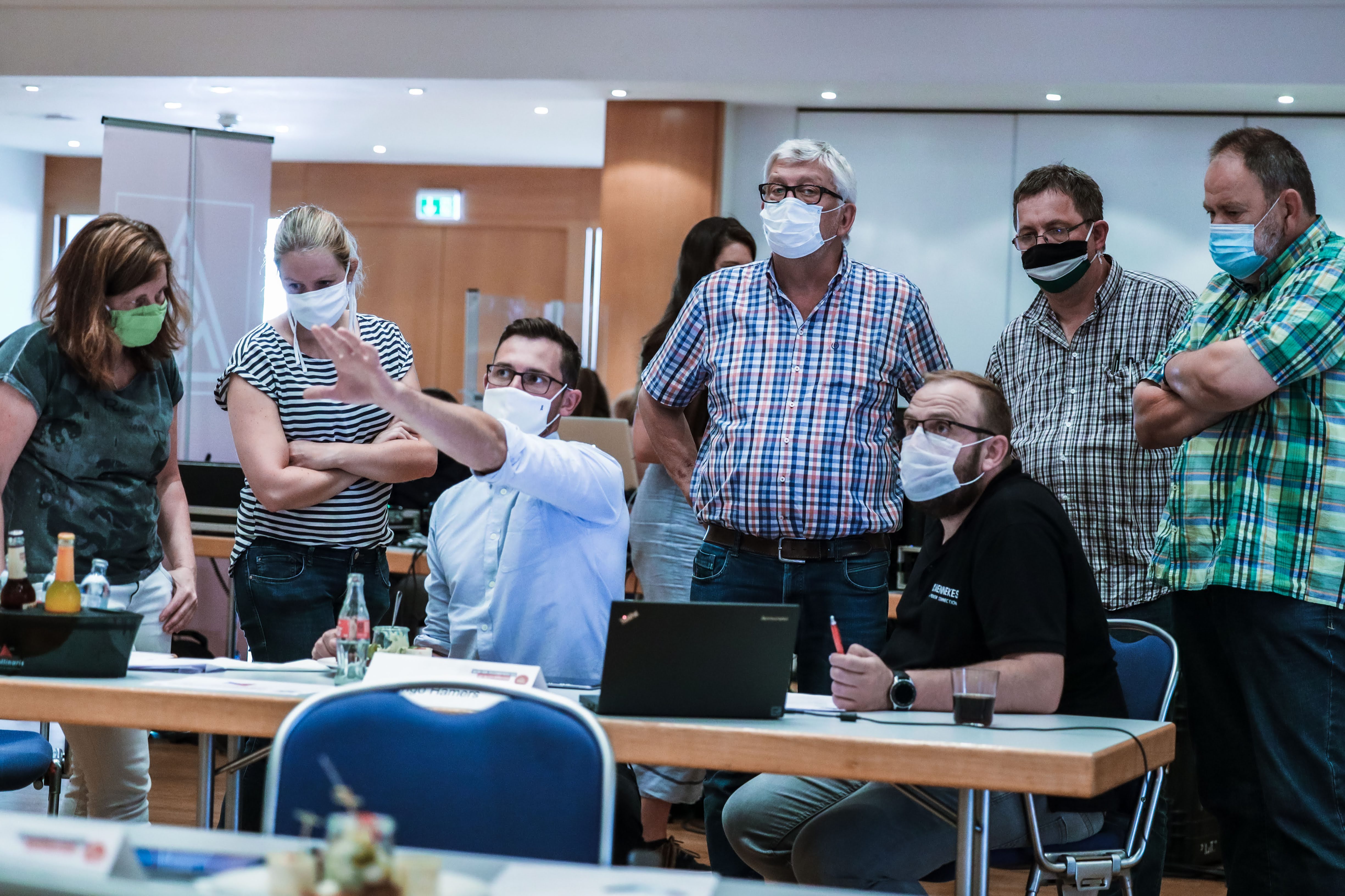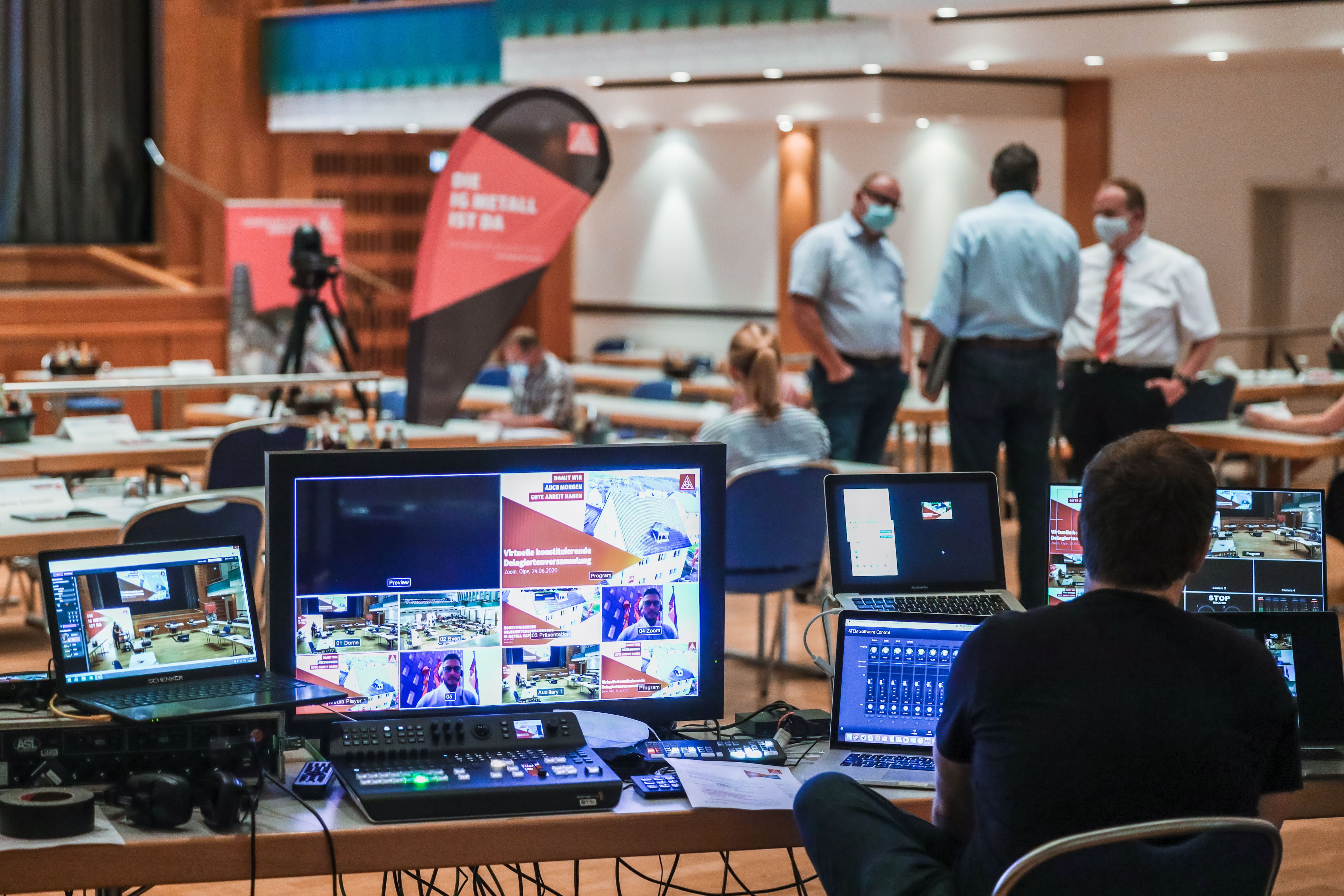 Die IG Metall im Kreis Olpe ist von Beginn der Corona-Pandemie an sofort neue Wege gegangen und hat ihre Mitglieder über virtuelle Versammlungen auf dem Laufenden gehalten. Bundesweit ist der Standort Olpe damit zum Modellprojekt geworden. Nun hat das Team die Erfahrungen der vergangenen Wochen genutzt und die erste (teil-)virtuelle konstituierende Delegiertenversammlung der gesamten IG Metall abgehalten: Während ein Teil der Teilnehmer gestern Abend in der Stadthalle in Olpe anwesend war, hatten sich die anderen per Video zugeschaltet. Über das elektronische Beteiligungssystem konnten alle an den anstehenden Wahlen teilnehmen, was während der vergangenen Wochen akribisch vorbereitet und juristisch geprüft worden war, um Datenschutz und Anonymität zu gewährleisten. Im Vorfeld erläuterte André Arenz detailliert und mit Hilfe eines vorbereiteten Videos, wie die Abstimmung über Teambiz funktioniert, was anschließend mit einer Probewahl getestet wurde. Sollte ein Delegierter nicht anwesend sein, erkennt das System automatisch, wer sein Stellvertreter und damit stimmberechtigt ist. Die Tagesordnung wurde angenommen, das elektronische Wahlverfahren einstimmig genehmigt und Uwe Schulte zum Versammlungsleiter bestimmt. Die Ergebnisse der Wahlen wurden jeweils von der Wahlkommission überprüft, das Ergebnis war einen kurzen Moment später auf der großen Leinwand sichtbar. In der ersten Wahlrunde wurde die Mandatsprüfungs- und Wahlkommission festgelegt, in der ab sofort Jörg Böhmer, Hubertus Rath, Susanne Schneider, Hans-Peter Grammel, Ingo Hamers und Alina Weber vertreten sind.