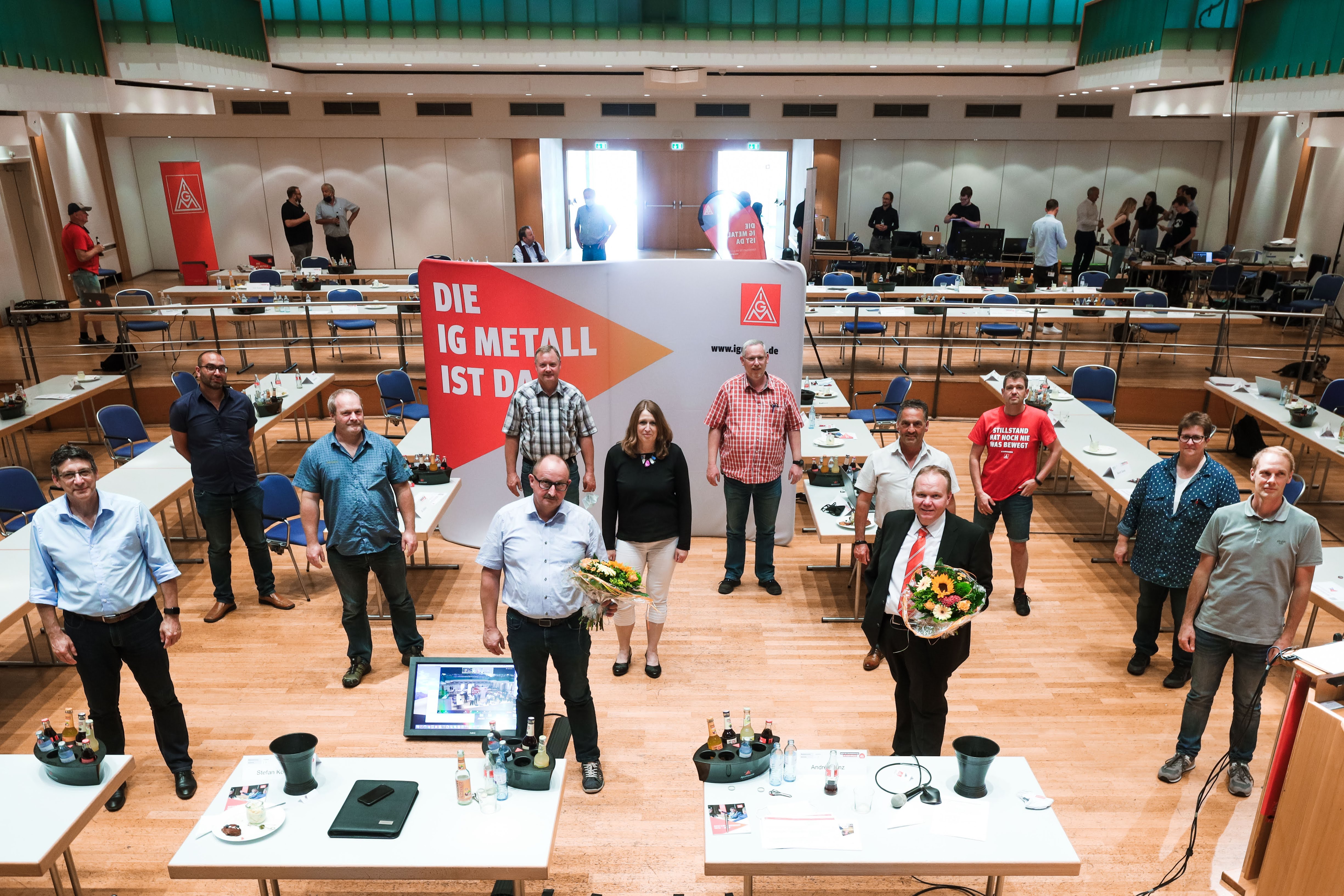 Die Mitgliederentwicklung sei leicht gesunken, weswegen er alle dazu aufrief, neue Mitglieder zu werben. Beim Blick auf die jetzige Situation wies er auf die umfangreichen betrieblichen Auseinandersetzungen mit den Betrieben und auf die finanzielle Ausstattung der Geschäftsstelle hin, die eine gleichbleibend gute Entwicklung zeige. „Da brauchen wir uns aktuell keine Sorgen machen und wir geben alles, dass das so bleibt.“ Einige Betriebe seien bereits bei virtuellen Betriebsversammlungen unterstützt worden, wer Bedarf habe, kann sich jederzeit mit der Geschäftsstelle in Verbindung setzen. Für die Zukunft gelte es, die Arbeits- und Lebensbedingungen zu sichern, die Beteiligungsorientierung weiter auszubauen, dadurch die Mitglieder noch mehr einzubeziehen und das Ehrenamt ausbauen. Er dankte allen, die sich bereits in der IG Metall engagieren und zum Gelingen der Veranstaltung beigetragen haben.