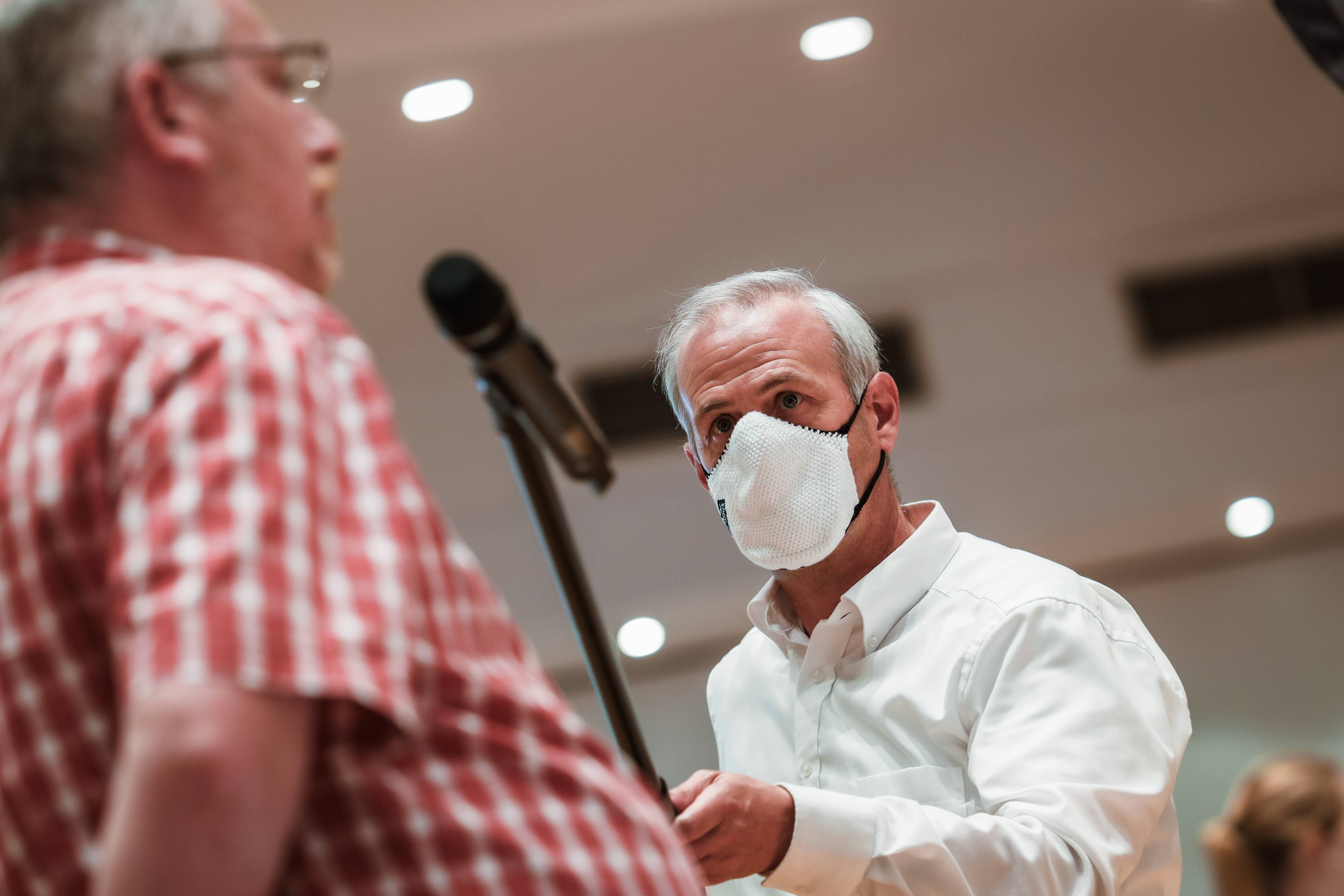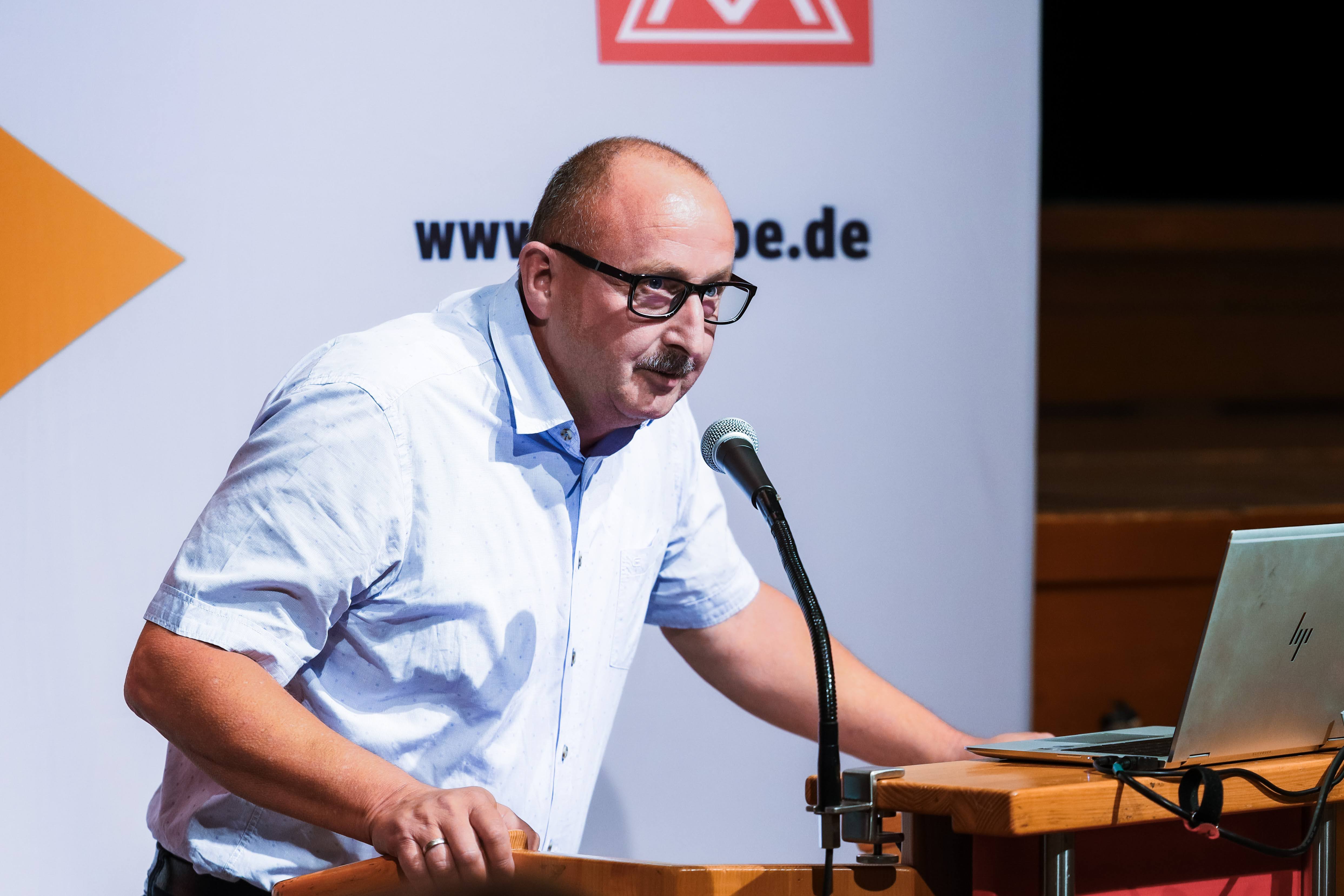 Als Gastredner sprach Knut Giesler, Bezirksleiter der IG Metall Nordrhein-Westfalen, über die Herausforderungen, die die Corona-Krise mit sich bringt. Die derzeitige Lage zeige sich mit dem mächtigen Knick im Produktionseinbruch - die größte Rezession der Nachkriegsgeschichte. Nachdem sich die Infektionszahlen zunächst beruhigt hatten, zeige der Blick nach Gütersloh, dass die Furcht vor der zweiten Welle gar nicht so unbegründet sei. Er nutzte die Gelegenheit und ging auf die Um- und Zustände bei Tönnies ein. Er sei sich sicher, dass das Vorkrisenniveau frühestens 2022 wieder zu erreichen sei. Der Blick auf die Mitgliederentwicklung zeige, dass momentan mehr gehen als kommen - 24 000 Mitglieder hat die IG Metall auf Bundesebene verloren. „Das hat massive Auswirkungen auf die gesamte IG Metall“, das eigentlich stärkere zweite Halbjahr werde hier vermutlich keine Besserung bringen.