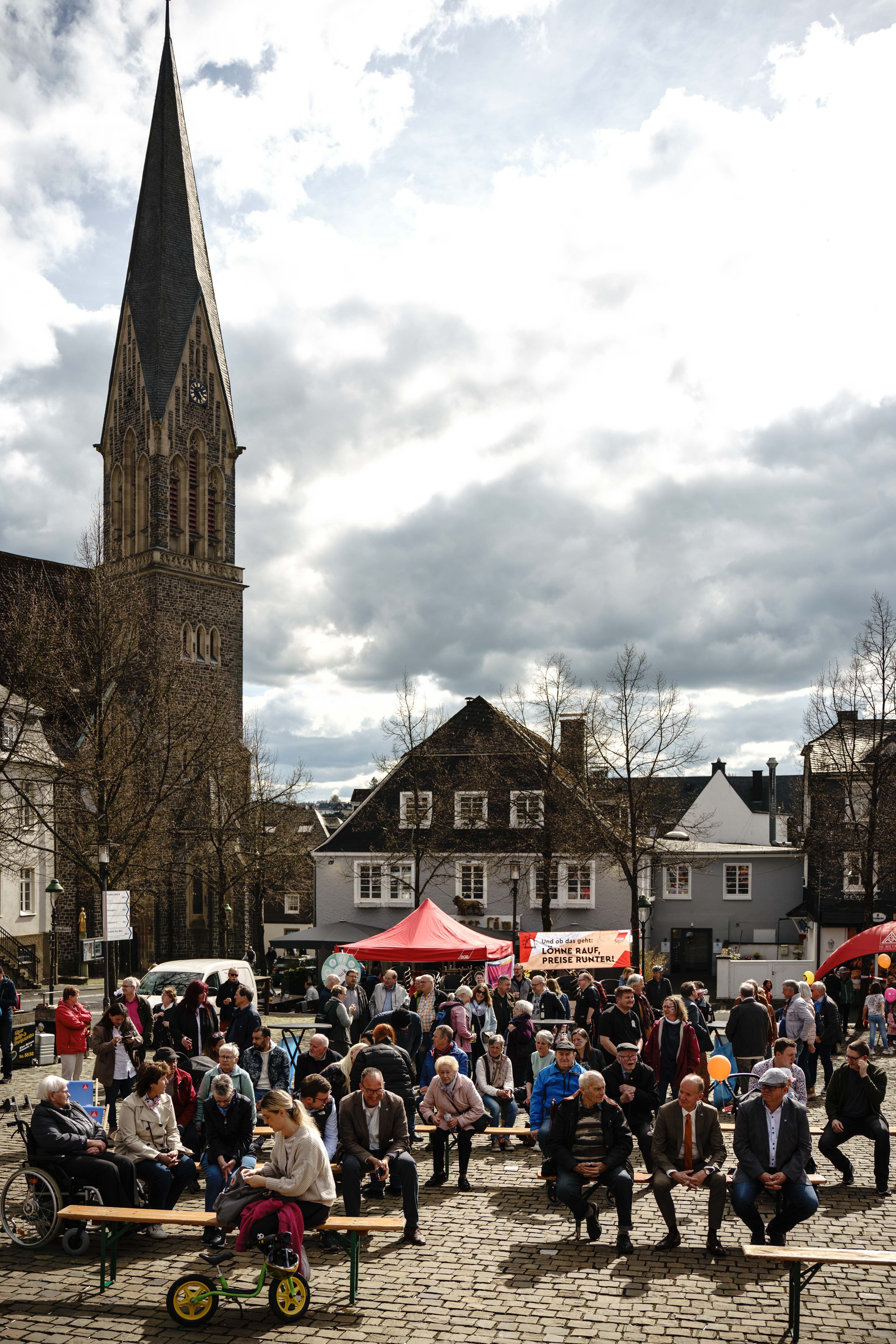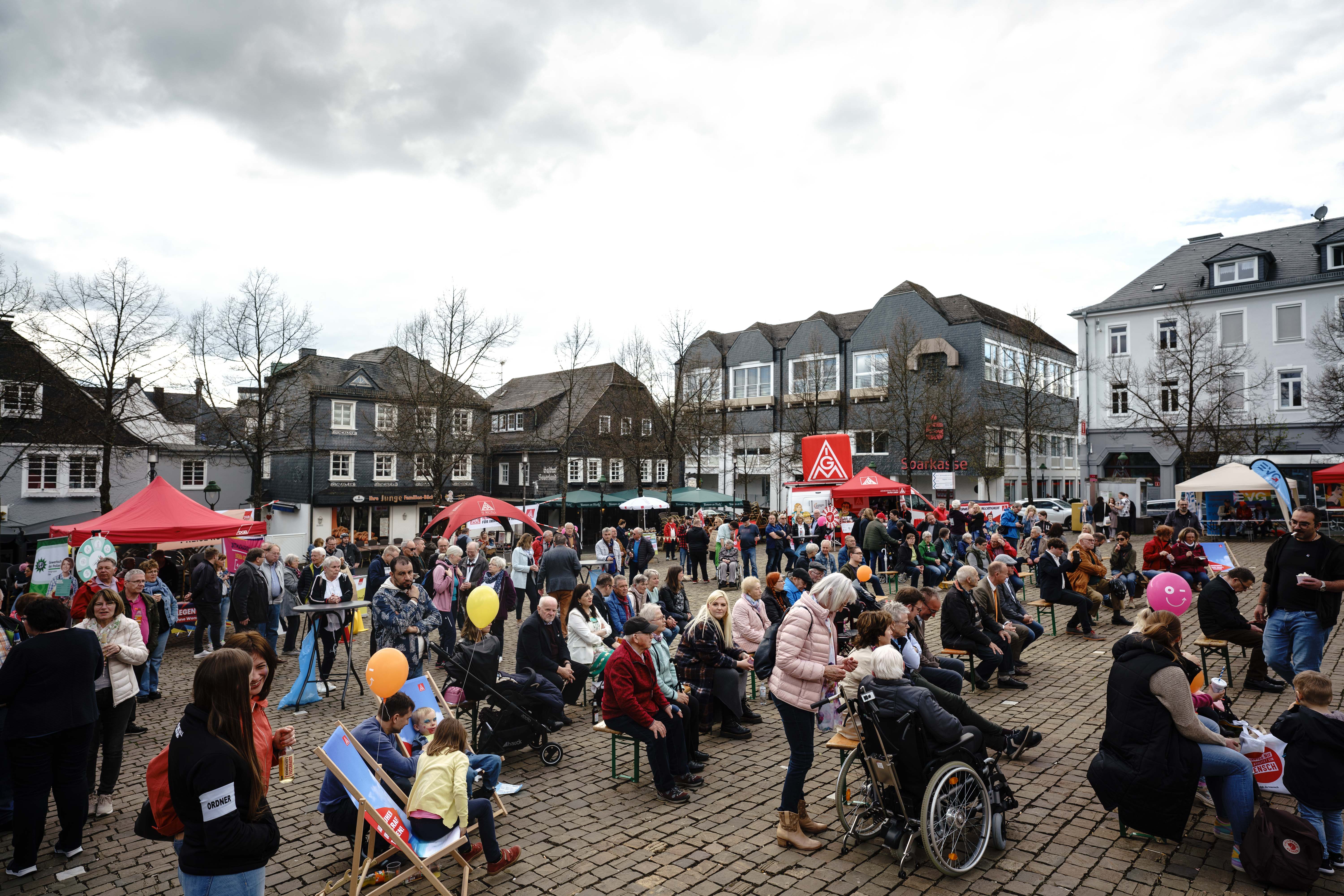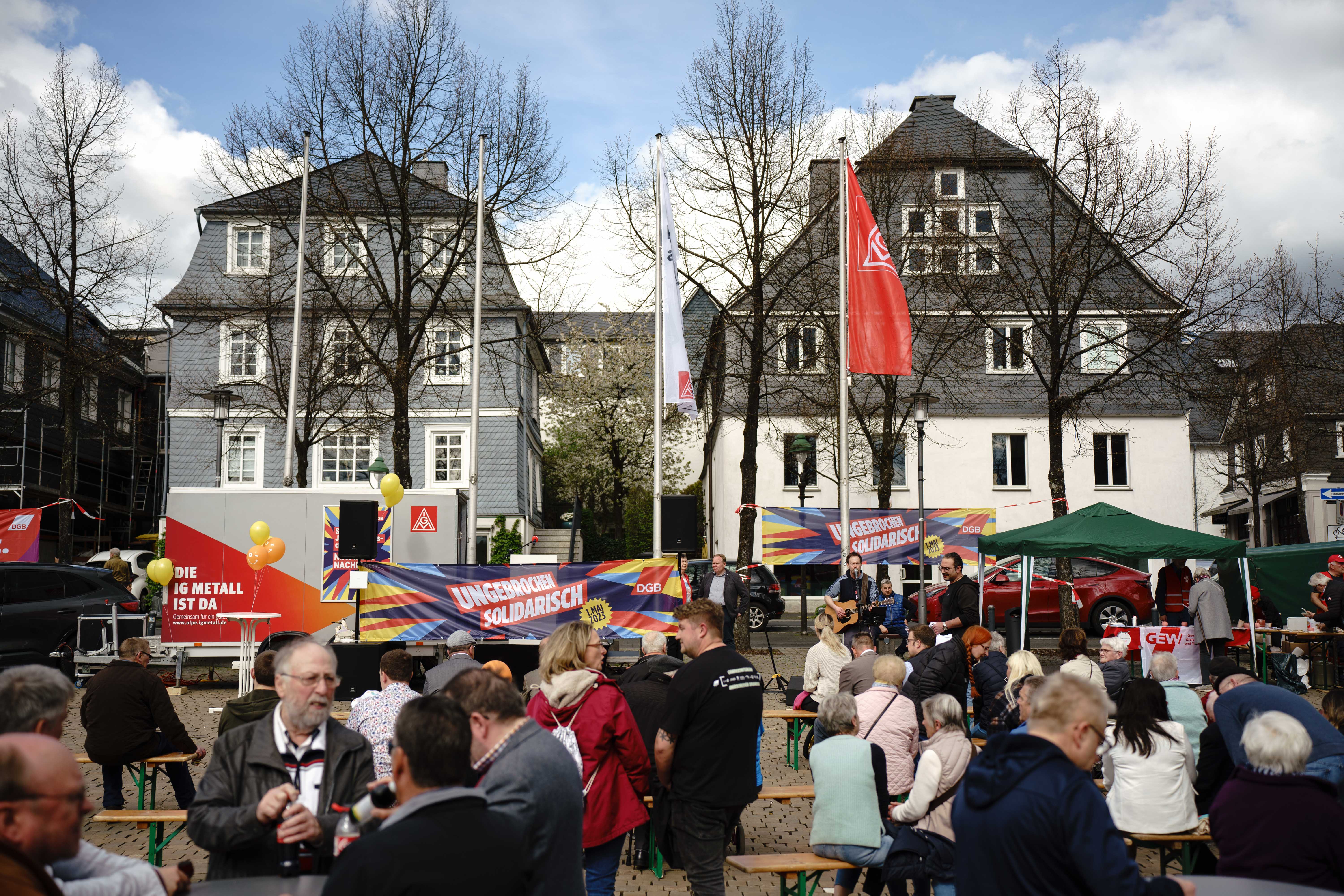 Wie jedes Jahr, laden wir auch in diesem zum Empfang vor dem ersten Mai ein. Auf dem Marktplatz in Olpe wollen wir mit Familienprogramm, Infoständen, und Musik aktuelle politische Themen platzieren und deutlich machen: Wir sind ungebrochen solidarisch! Deutschlandweit, Europaweit, Weltweit!